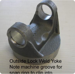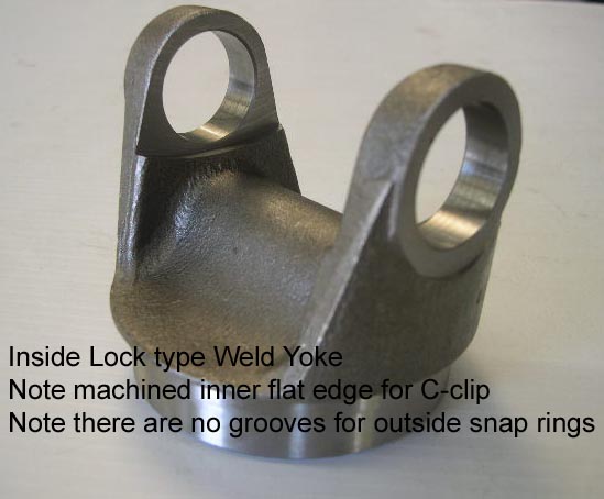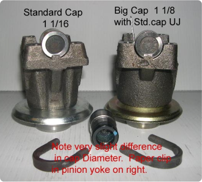The photo shows the difference: the left yoke has a standard 1 1/16 cap, while the right BC (Big Cap) yoke needs a 1.125 cap. A loose fit indicates play, which is too much. This could mean a worn yoke or the wrong UJ cap, causing high-speed vibrations and shiny rub marks inside the yoke.
